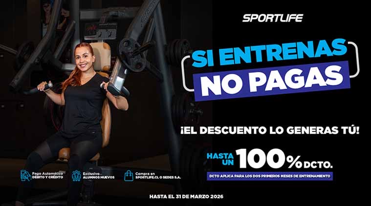 Los interesados pueden acceder a este plan “Si entrenas no pagas” a través de ventas en sedes y en el sitio web www.sportlife.cl. Su validez es hasta el 31 de marzo de 2026.