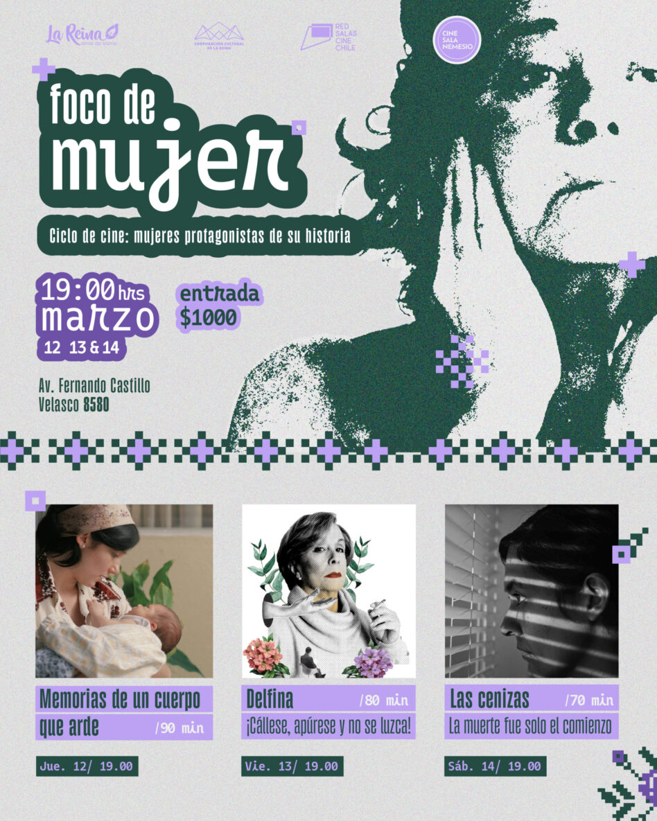En el marco de la conmemoración del Mes de la Mujer, la Corporación Cultural de La Reina anuncia el ciclo cinematográfico “Foco de Mujer”, una selección de películas que llegarán a la pantalla de Sala Nemesio. Este ciclo estará compuesto por tres largometrajes de reciente estreno, dirigidos y protagonizados por mujeres.